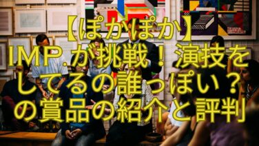 2026年4月27日のフジテレビ ぽかぽかで「演技をしてるの誰っぽい?」が紹介されましたね。ゲストはIMP.の椿泰我さん、松井奏さん、影山拓也さん、横原悠毅さん、鈴木大河さん、佐藤新さん、基俊介さんでした。参考になれば幸いです。
