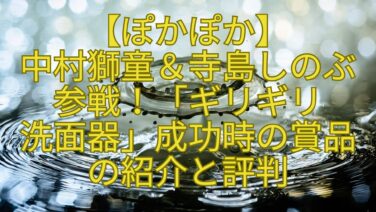 ぽかぽか 【ぽかぽか】中村獅童&寺島しのぶ参戦!「ギリギリ洗面器」成功時の賞品の紹介と評判
