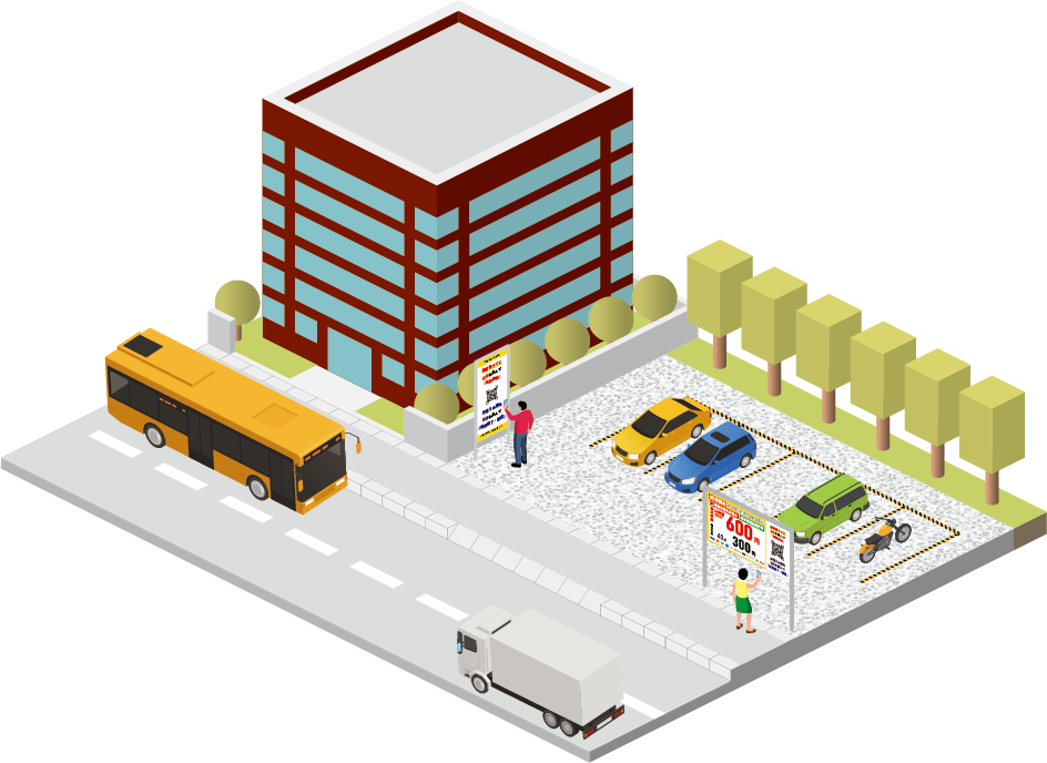 • 駐車場から「精算機」「ゲート」「ロック板」を引き算