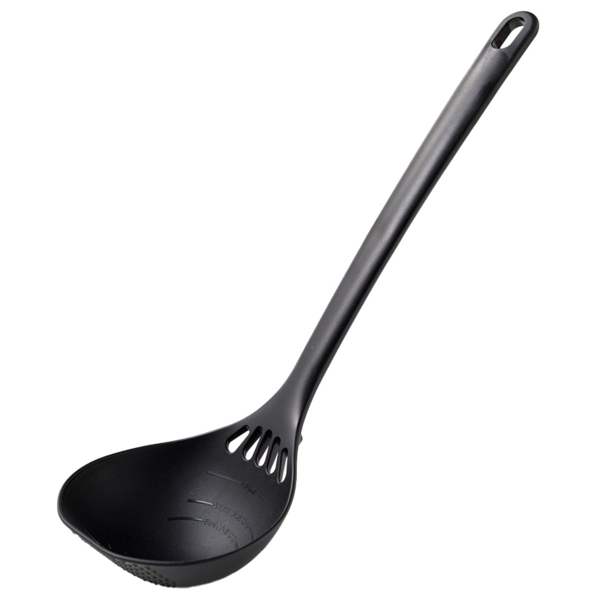 - お玉・汁切り・マッシャー・計量カップとしてマルチで使える1本4役※計量ラインは目安になります。(50ml/大さじ1/小さじ1)