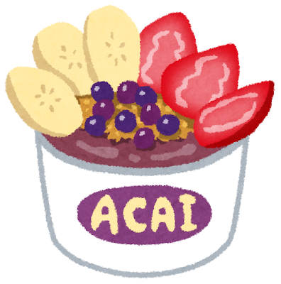 • アサイーとバナナのスムージーベースに、色々な冷凍フルーツがトッピングされています。